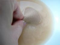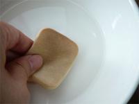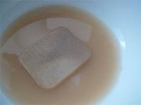 用意したキレイの匠洗浄液にお化粧スポンジをつけます。